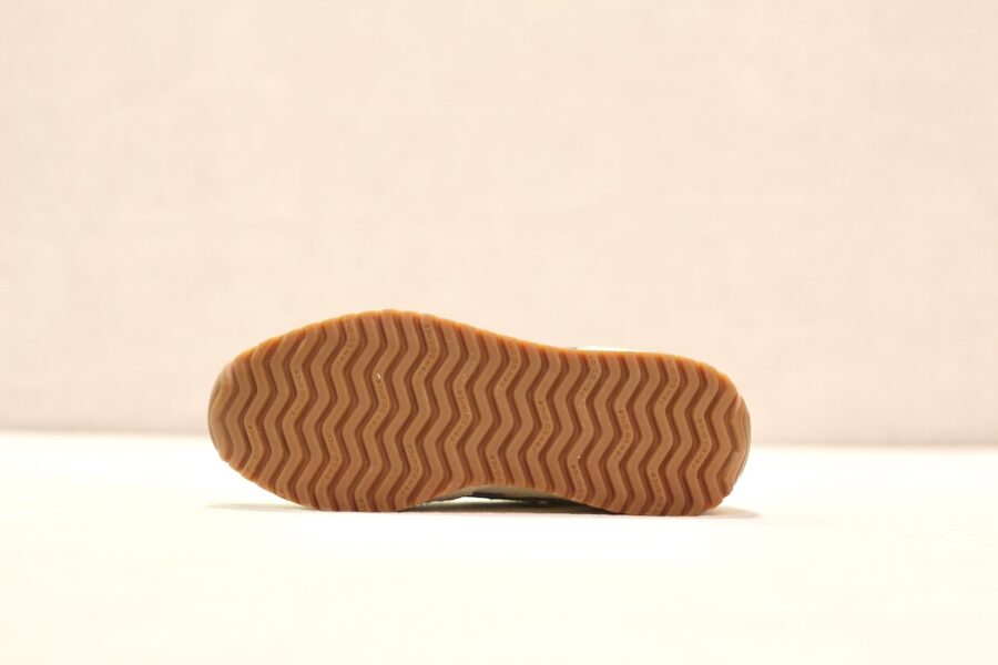 Empeigne en suède pigskin et nylon mesh subtilement ajouré pour apporté un peu de respirabilité,