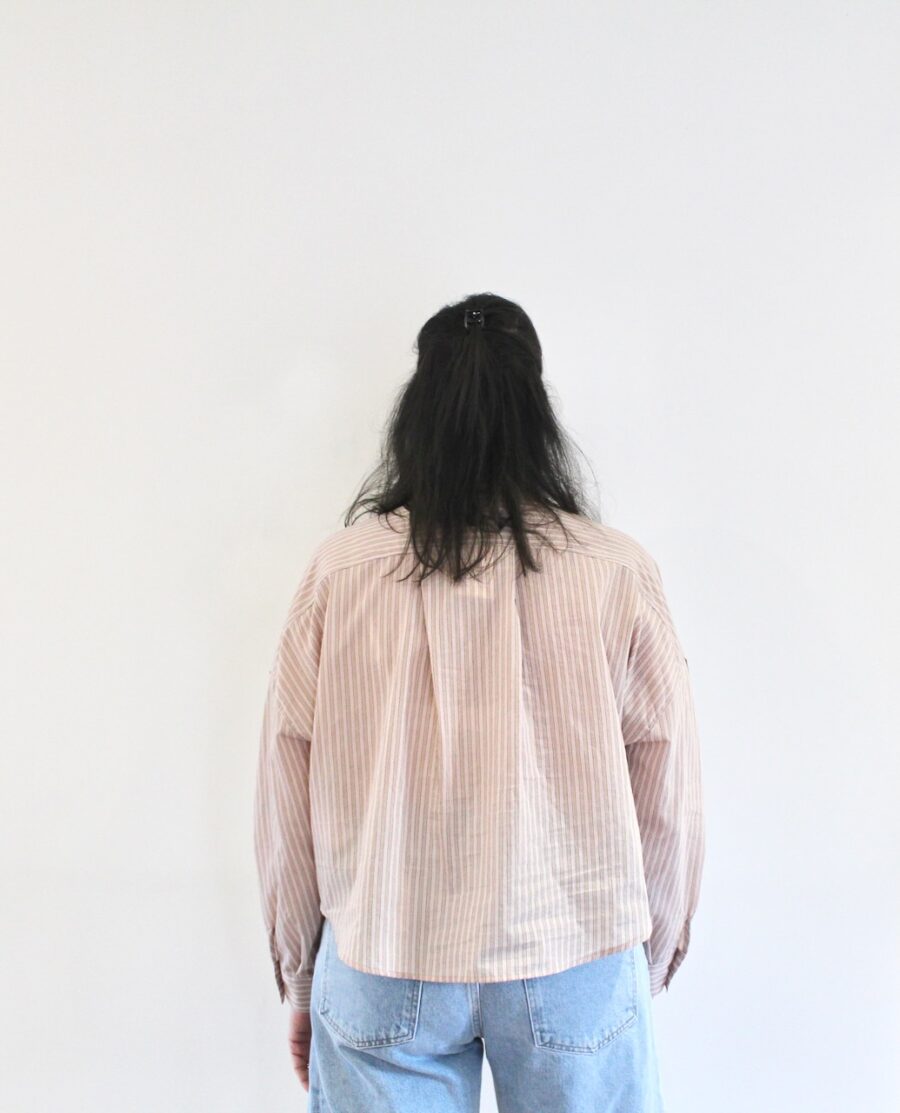 à fines rayures, coupe courte et oversize,